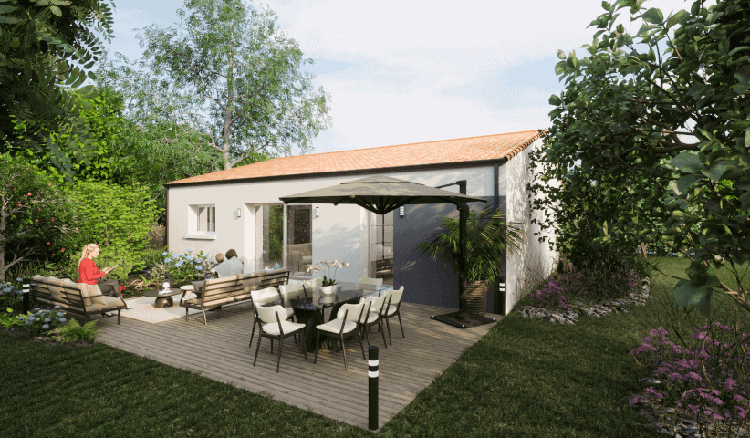 Coût de construction indicatif d’un projet de maison individuelle soumis au contrat protecteur du Code de la construction et de l’habitation (garanties financières et techniques du constructeur incluses). Voir détails en agence. Visuels non-contractuels. Prix à ajuster après visite terrain et selon vos choix définitifs. Hors droits de mutation, taxes locales, frais de raccordement. Terrain sélectionné auprès de partenaires fonciers pour la construction d’une maison neuve par ALLIANCE CONSTRUCTION (non mandatée pour réaliser la vente du terrain), sous réserve de disponibilité.