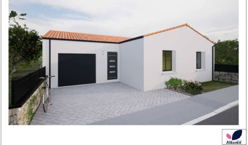 Coût de construction indicatif d’un projet de maison individuelle soumis au contrat protecteur du Code de la construction et de l’habitation (garanties financières et techniques du constructeur incluses). Voir détails en agence. Visuels non-contractuels. Prix à ajuster après visite terrain et selon vos choix définitifs. Hors droits de mutation, taxes locales, frais de raccordement. Terrain sélectionné auprès de partenaires fonciers pour la construction d’une maison neuve par ALLIANCE CONSTRUCTION (non mandatée pour réaliser la vente du terrain), sous réserve de disponibilité.
