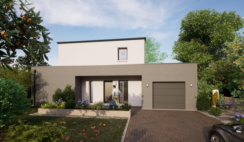 Coût de construction indicatif d’un projet de maison individuelle soumis au contrat protecteur du Code de la construction et de l’habitation (garanties financières et techniques du constructeur incluses). Voir détails en agence. Visuels non-contractuels. Prix à ajuster après visite terrain et selon vos choix définitifs. Hors droits de mutation, taxes locales, frais de raccordement. Terrain sélectionné auprès de partenaires fonciers pour la construction d’une maison neuve par ALLIANCE CONSTRUCTION (non mandatée pour réaliser la vente du terrain), sous réserve de disponibilité.