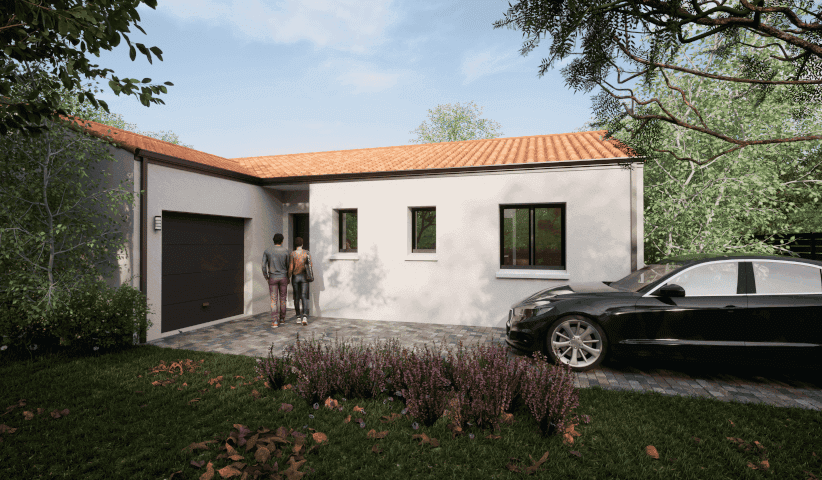 Un projet de construction? Cette maison de 71m2, 2 chambres + garage sur un terrain bien exposé de 350m2 à La Flocellière (Sèvremont).