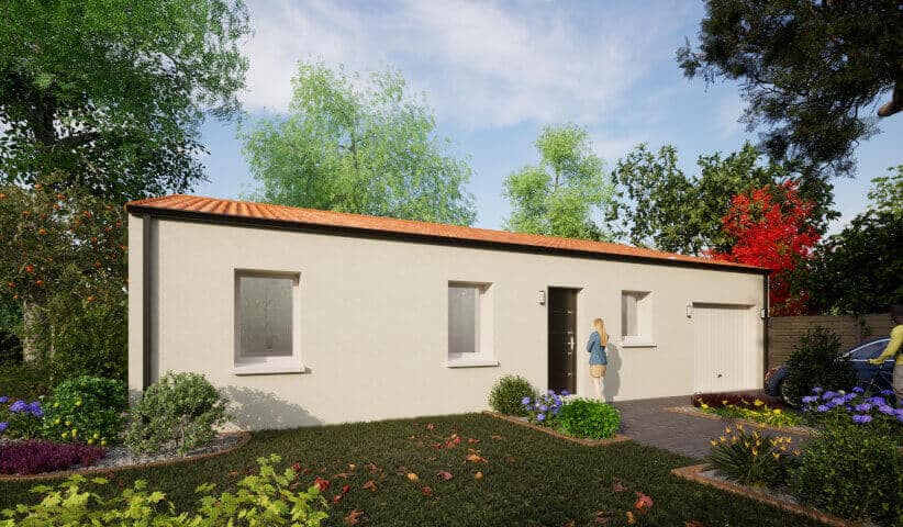 Un projet de construction? Cette maison de 88m2, 3 chambres + garage sur un terrain bien exposé de 342m2 à La Meilleraie-Tillay.