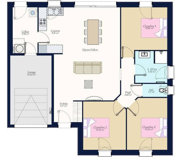 Découvrez cette maison neuve de type 5 (3 chambres avec placards) respectant la norme RE 2020 et équipée d’une pompe à chaleur pour un confort et des économies d’énergie optimaux.