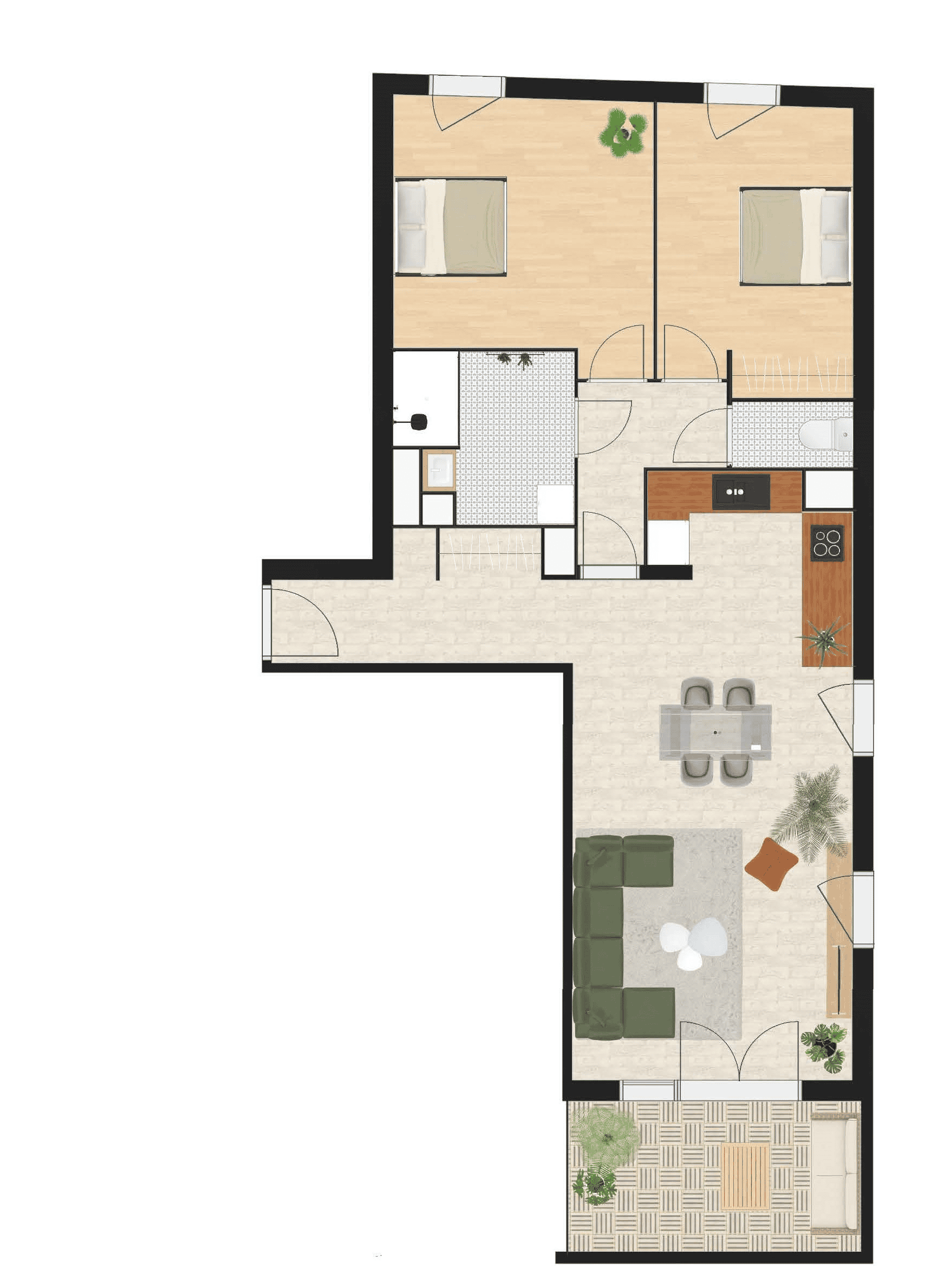 Du T1 au T4, chaque appartement du Loriot bénéficie d’un agencement fluide, pensé pour optimiser chaque mètre carré. Le séjour s’ouvre sur l’extérieur, favorisant la lumière naturelle et la convivialité. La cuisine ouverte prolonge la pièce à vivre, idéale pour des moments partagés en famille ou entre amis.